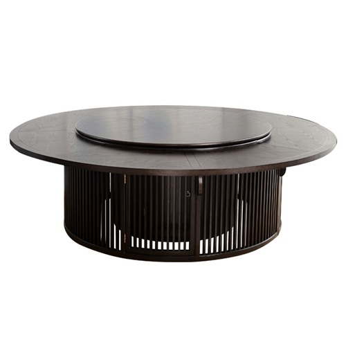 酒店包廂新中式古典實(shí)木2米20人帶轉盤(pán)電動(dòng)餐桌圖