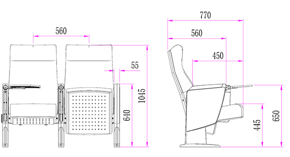 2.座椅基本中心距為560±5mm,座包打開(kāi)側深760±5mm,基本椅高為1025±5mm,最小排距:950mm。