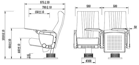 | 座椅深度:775±10mm,扶手高664±10mm:最小排距:900mm。 |